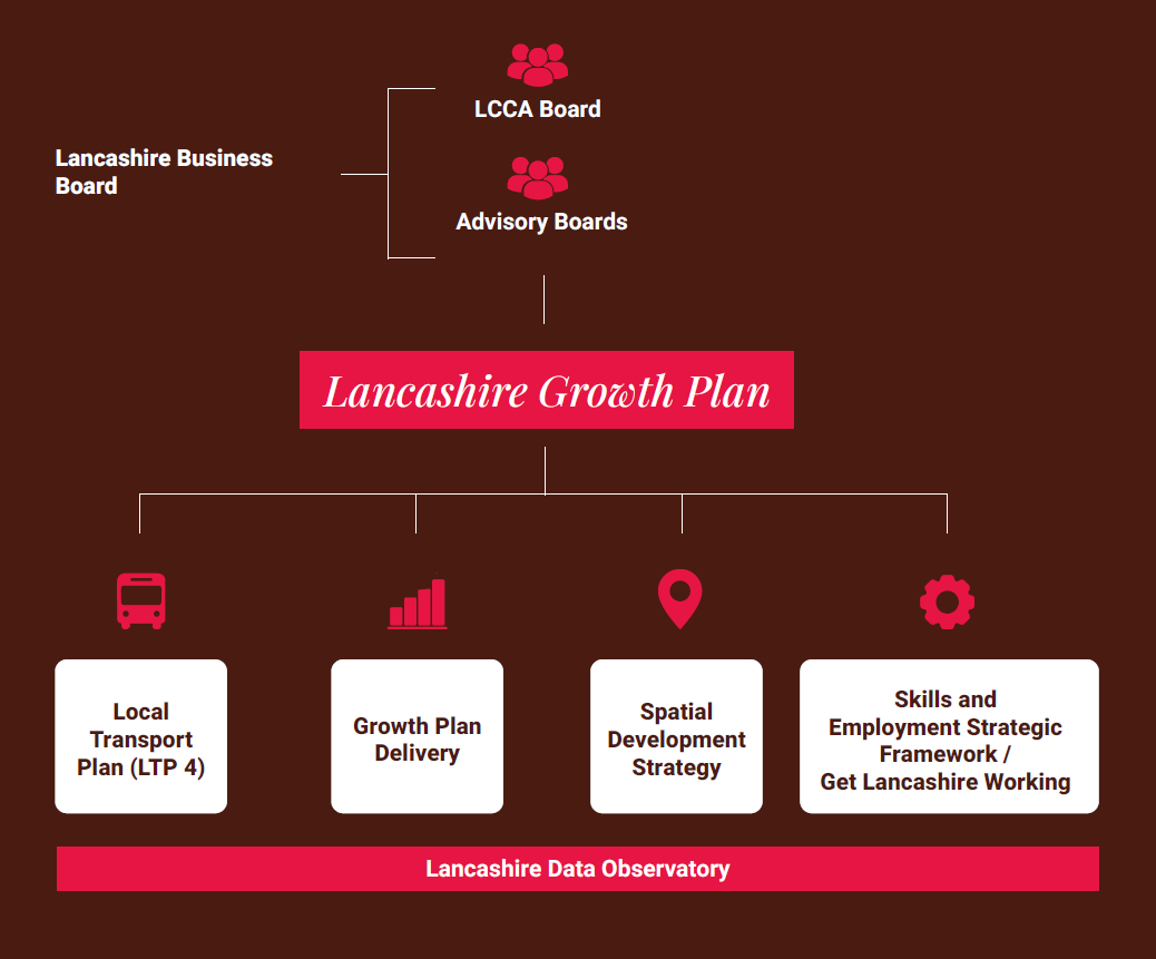 The Lancashire Growth Plan sits at the heart of the LCCA’s emerging strategic approach. It serves as the central organising document that aligns local ambition with national priorities, guiding investment, policy, and partnership activity across the county.
