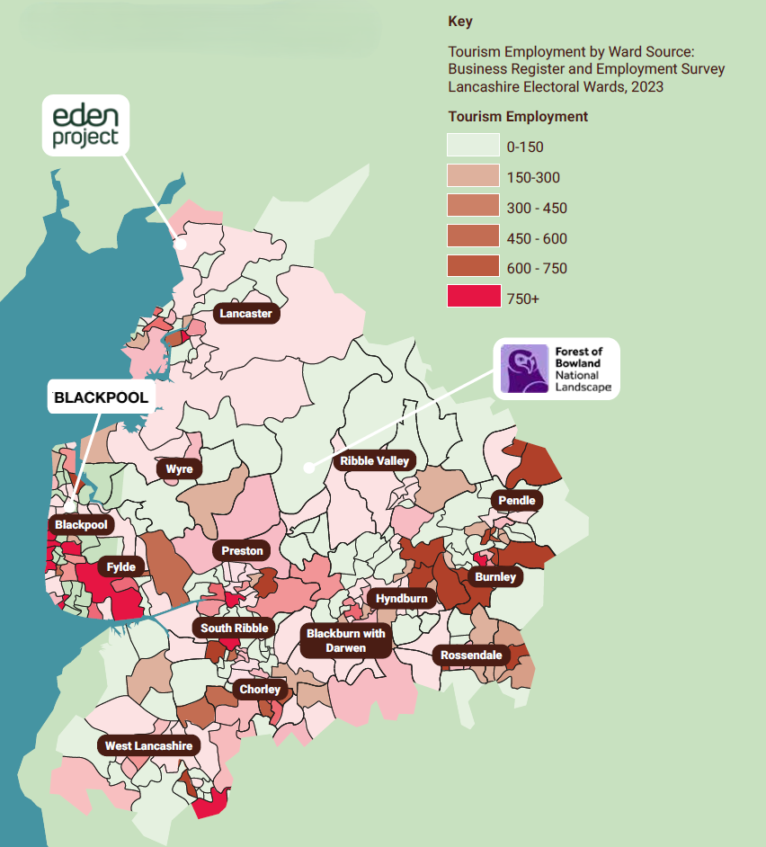 The county’s approach reflects Visit Lancashire’s SMART tourism principles, which focus on sustainability, mutual benefit, accessibility, innovation, and the use of digital tools to guide development. The Lancashire coast, in particular, is fundamental to the economic revival of the tourism sector. Blackpool leads the UK in domestic family tourism, with 21 million visits in 2023 and a £1.5 billion visitor economyxix. Major projects such as the £300 million Blackpool Central development and the extension of the famous Illuminations are part of a wider £2 billion Growth and Prosperity programme.